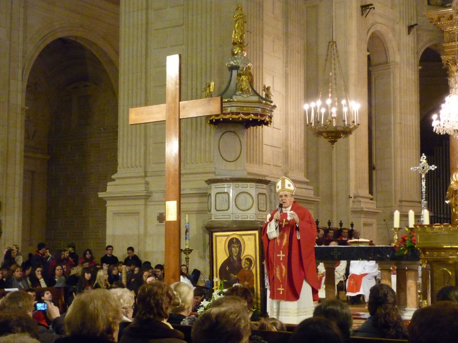 A les 19.30, molts jovens i parroquians de la cantornada, es reuniren per rebre la creu i la icona de la verge a la parròquia de Sant Francesc, per després anar en processoó fins la Seu, on tindria lloc l'Eucaristía presidida per Monsenyor, Carlos Osoro, Arquebisbe de València, junt amb un bon grapat de sacerdots de tota la Vicaria. Cal mencionar que el moviment Júnior ha segut l'encarregat d'acollir aquest event a les diferents localitats en que a assisitit la creu, a Xàtiva concretament tambè és van reunir un gran grapat d'educadors juniors de la zona La Ribera, sent un dels col·lectius més nombrosos allí presents.